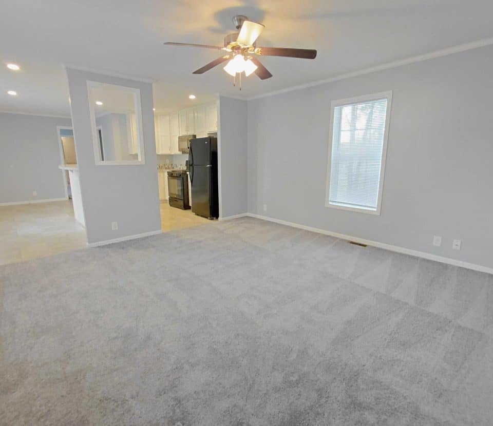 Modern Palette Enjoy the fresh neutral gray paint and plush soft carpeting throughout the generous living room and bedrooms